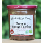 De kastanjecrème wordt vervaardigd met biologische kastanjes uit de Ardèche, de plek in Frankrijk waar de beste kwaliteit kastanjes vandaan komt. Het is eigenlijk een confiture. Heerlijk op brood, over ijs, in yoghurt of kwark en op crèpes.